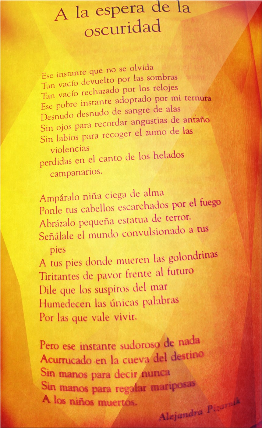 Etiquetado con A la espera de la oscuridad, Alejandra Pizarnik, Argentina, book, Cultura, Imagen, lectura, leer, letras, libro, Literatura, México, Participación, poesía, poeta, procesos culturales, write, writer
