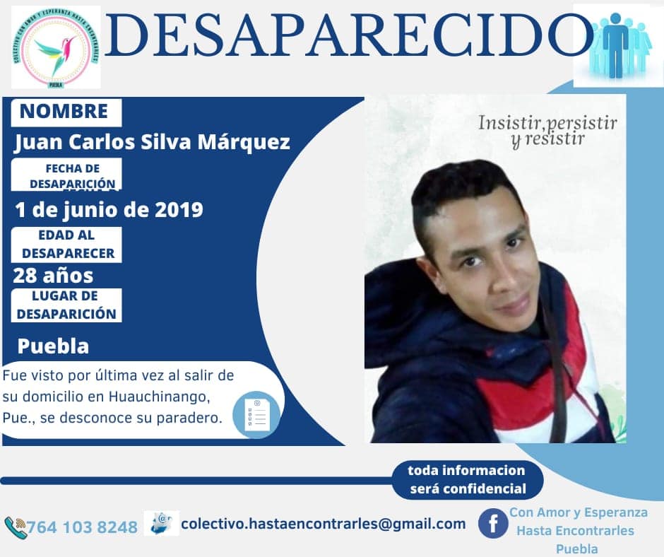 Fue visto por última vez al salir de su domicilio en Huauchinango, Puebla, el día 1 de junio de 2019 con la edad de 28 años. Se desconoce su paradero.
