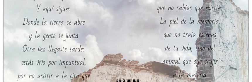 “Y entre los presentes, el que menos se invita, el que más invitaciones se le retira, a los cataclismos que se desearían dejaran de existir (aunado por la enorme ayuda del capitalismo) se encuentra varios puntos de la república mexicana bajo el escombro de la dolencia, la incredulidad, el miedo. El terremoto nos recordó cuan vulnerables como humanidad somos y